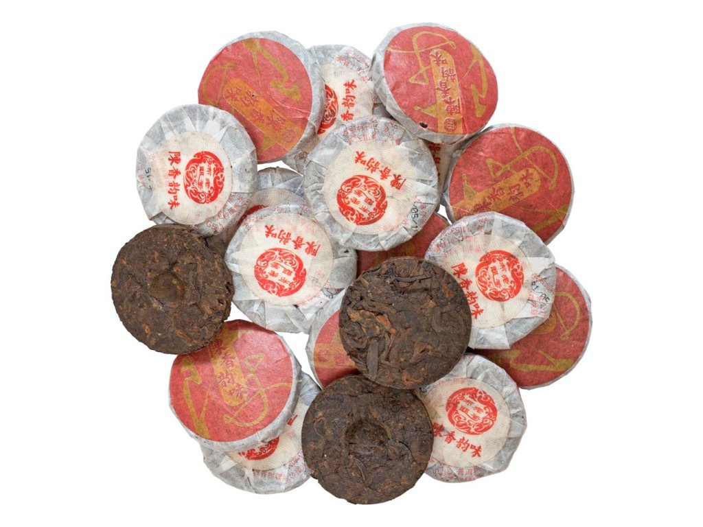 This Pu-erh (shu) tea comes from a spring 2018 harvest in the Badashan Mountains in Menghai County. After being harvested, the leaves were aged locally for three years before being pressed in 2021 into compact mini cakes weighing approximately 8 g each. Unlike typical mini tuo cha, which require broken leaves due to their small molds, these cakes are made from largely intact leaves, similar to those used in standard 200 g and 357 g cakes. The resulting infusion is rich and well-rounded, offering earthy tones complemented by hints of dried fruit. Thanks to its depth and balanced character, this tea is approachable for beginners while still providing enough complexity to satisfy experienced Pu-erh enthusiasts.Additional parameters