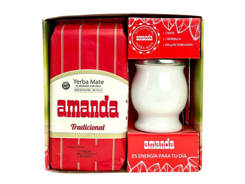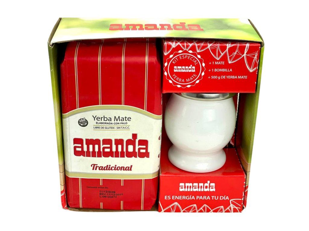 Amanda Set includes:_x000D_ Amanda yerba mate 500g_x000D_ Stainless steel maté container with Amanda logo Amanda bombilla, 15cm_x000D_ _x000D_ Amanda yerba mate: This maté comes from the renowned province of Misiones in Argentina. The tea contains leaves, stems, and powder in perfect proportion. The infusion is pleasantly fresh and needs no additional flavoring. It's a maté suitable for daily drinking. The company was founded by a Polish immigrant, Jan Szychowski._x000D_ _x000D_ Ideal set for beginners or as a gift.Additional parameters