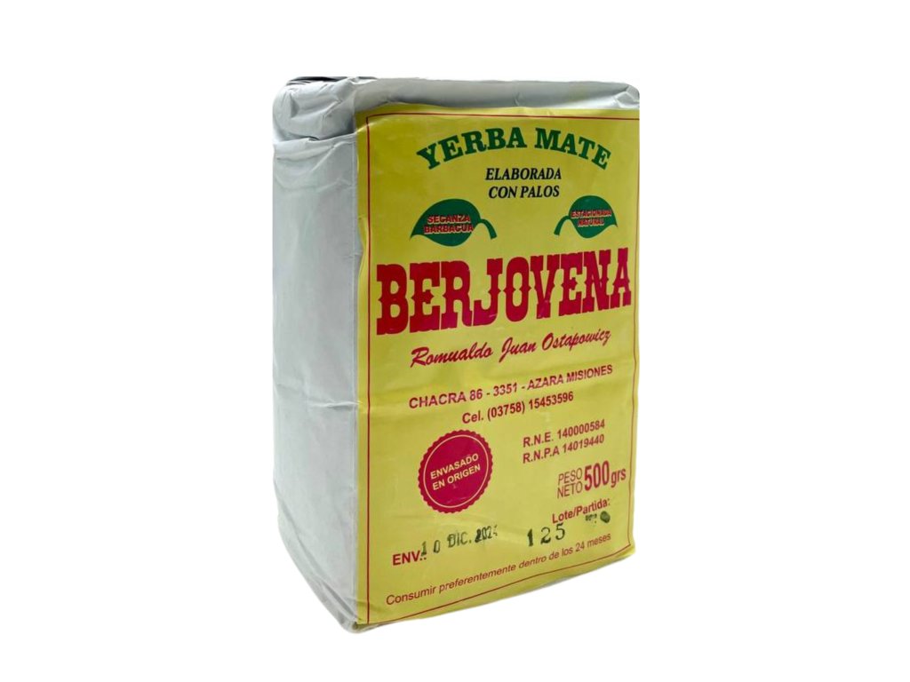 Yerba Mate Berjovena Tradicional 500?g comes from the Corrientes province of Argentina and delivers a genuine, traditional mate experience. With stems (con palo) and a medium strength, it’s perfect for daily drinking or extended gatherings with friends. The flavor blends light earthiness with subtle woody notes and lacks excessive bitterness. This yerba is processed traditionally, including natural aging, which lends the infusion a rounded and balanced character. Berjovena takes pride in its sustainable practices and artisanal quality—offering a mate that honors its roots and captures the true spirit of Argentina.Additional parameters