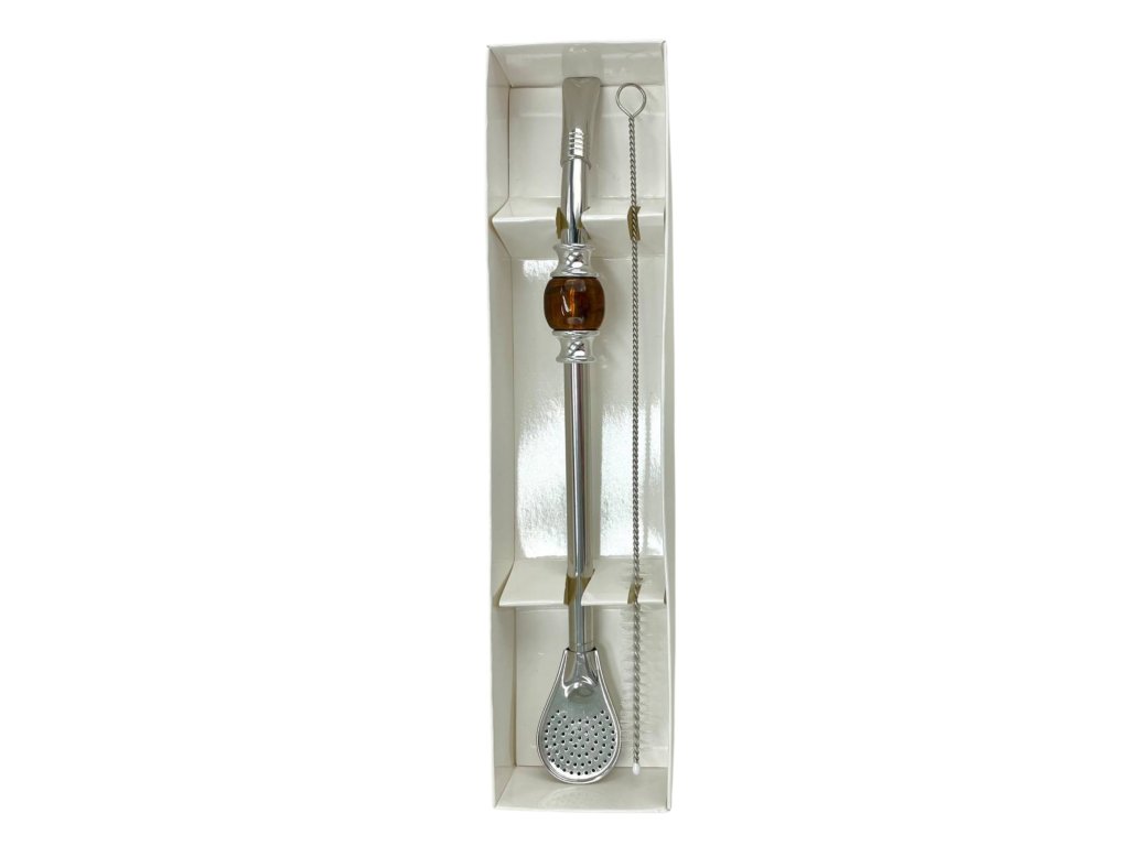 Bombilla set Cuchara 22cm, with cleaning brush in gift carton box, AMBER