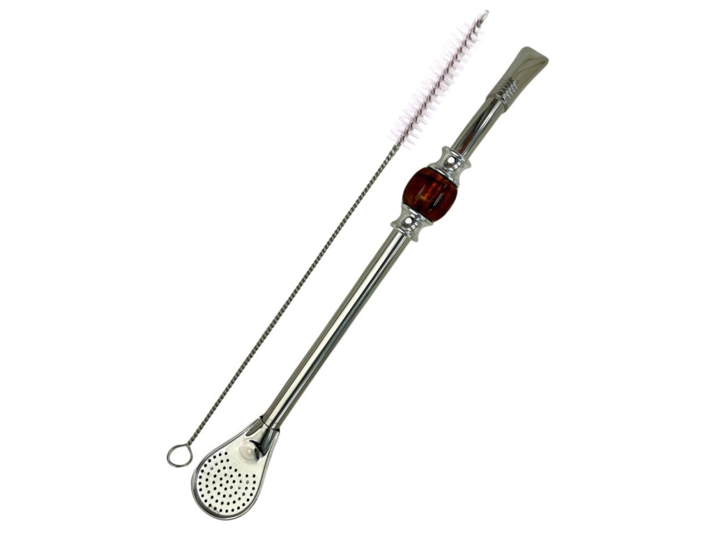 Bombilla with an orange stone, 22 cm in length, made of stainless steel + cleaning brush.