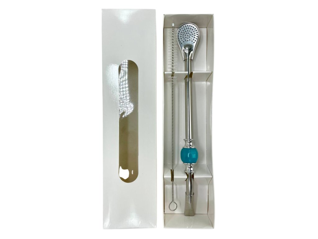 Bombilla set Cuchara 22cm, with cleaning brush in gift carton box, TURQUOISE