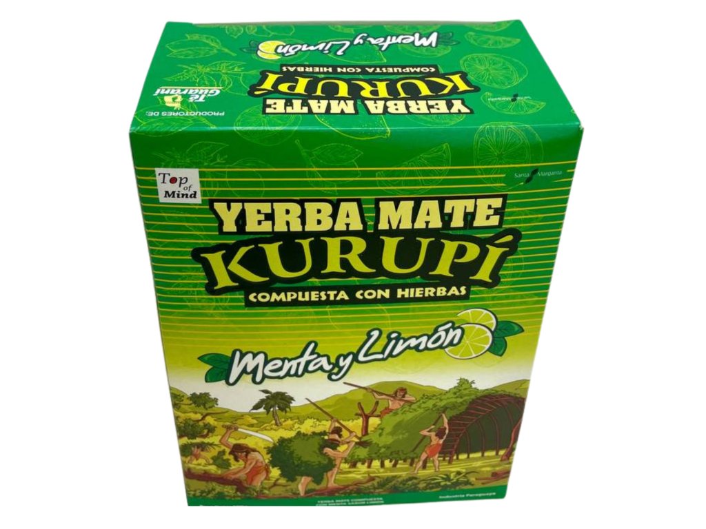 Kurupi Menta Lemon je prémiová yerba maté, která kombinuje vysoce kvalitní yerba maté s osvěžujícími chutěmi máty a citronu. Tento produkt pochází z Paraguaye a je známý svou čerstvou a aromatickou chutí, která je výsledkem pečlivě vybraných listů a přidání přírodních chutí máty a citronu. Tato yerba maté je ideální pro přípravu tradičního nápoje maté, který je oblíbený pro své stimulující účinky a bohatou chuť. Kurupi Menta Lemon nabízí jemně mletou yerba maté s většími listy, což zajišťuje vyvážený a dlouhotrvající chuťový zážitek. Zajímavost: Yerba maté Kurupi Menta Lemon je populární mezi nadšenci yerba maté, kteří hledají kombinaci tradičního nápoje maté s osvěžujícími chutěmi. Tento produkt je ideální pro každodenní konzumaci a přináší radost s každým šálkem. Hmotnost: 500g Původ: ParaguayDoplňkové parametry
