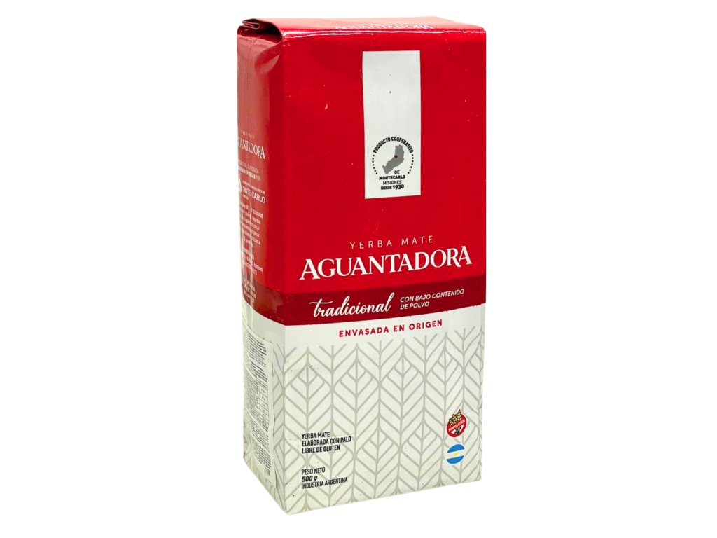 Yerba Mate Aguantadora Tradicional je produktem zemědělské družstevní společnosti Monte Carlo, která vyrábí mate od roku 1930. Roky práce na zlepšení kvality přispěly k vytvoření velmi dobré yerby, zrající až 18 měsíců. Produkty Aguantadora, po počátečním průchodu listů ohněm (ihned po sklizni jsou sušeny pouze teplým vzduchem po dobu 6 až 8 hodin, což činí produkt bez kouře (sin humo)). Aguantadora Tradicional má velmi zajímavou argentinskou chuť. To vše díky procesu zpracování, který izoluje listy od kouře během sušení. V důsledku toho získáváme lahodný produkt, který je příjemný na patře s tlumenou hořkostí. Aguantadora Tradicional je yerba, která získala zvláštní cenu za nejlepší chuť yerba mate na argentinském veletrhu Caminos y Sabores (2016 v Buenos Aires). Hmotnost: 500g Země původu: Argentina.Doplňkové parametry