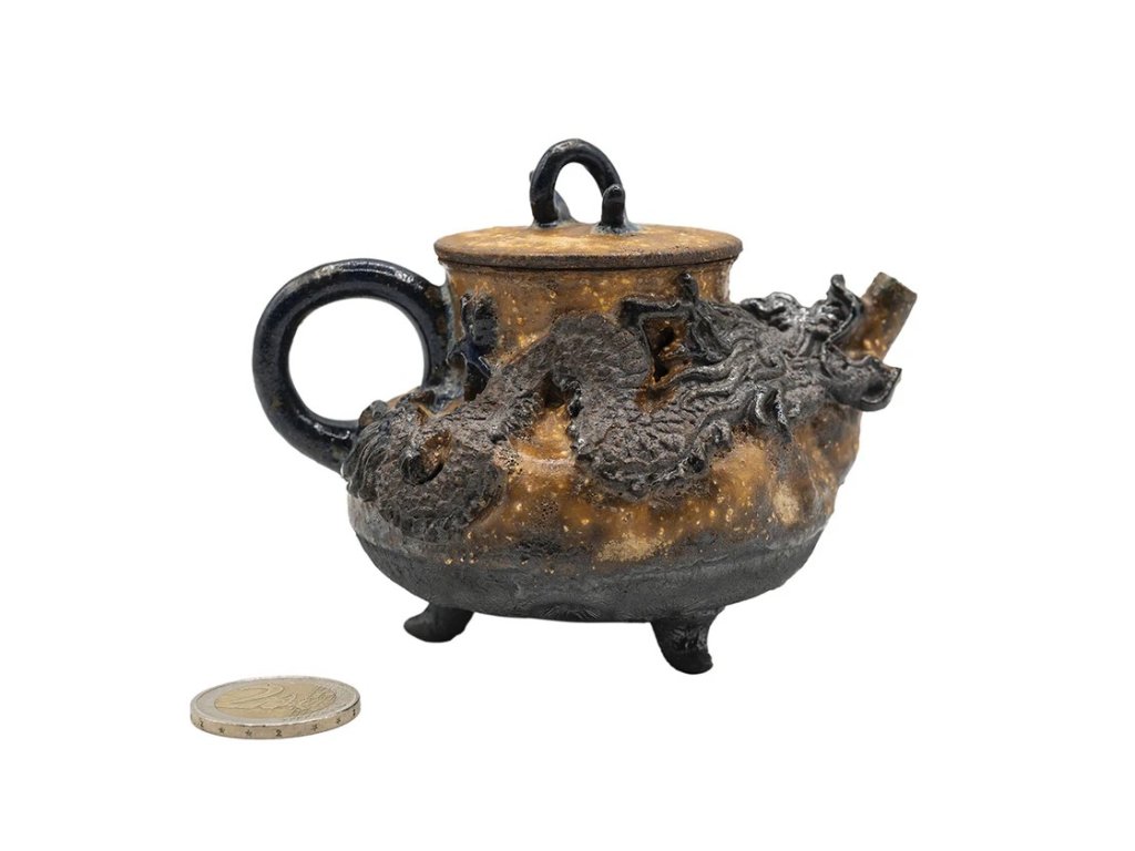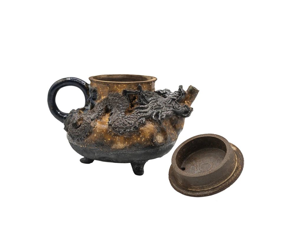 This ceramic decorative teapot from Dehua features a finely sculpted dragon motif, symbolizing strength and good fortune. The contrasting two-tone finish enhances its artistic character, while the ornamental lid adds an elegant finishing touch. Designed primarily for display, it also makes a meaningful symbolic gift for lovers of traditional craftsmanship and cultural art. Height: 8.5 cm Weight: 180 g Volume: 140 mlAdditional parameters
