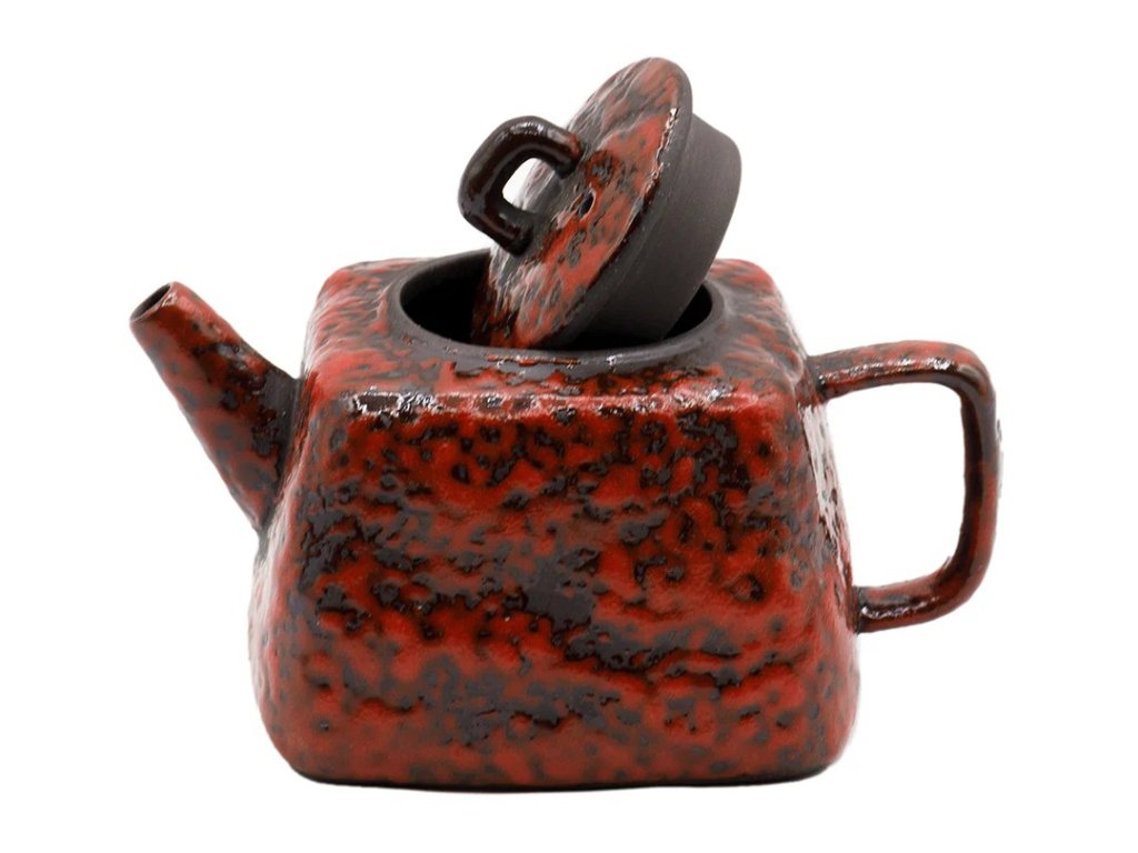 Coral Red Ceramic Squared Teapot # 93463, 120 ml