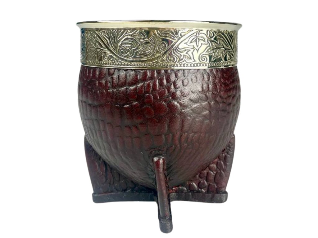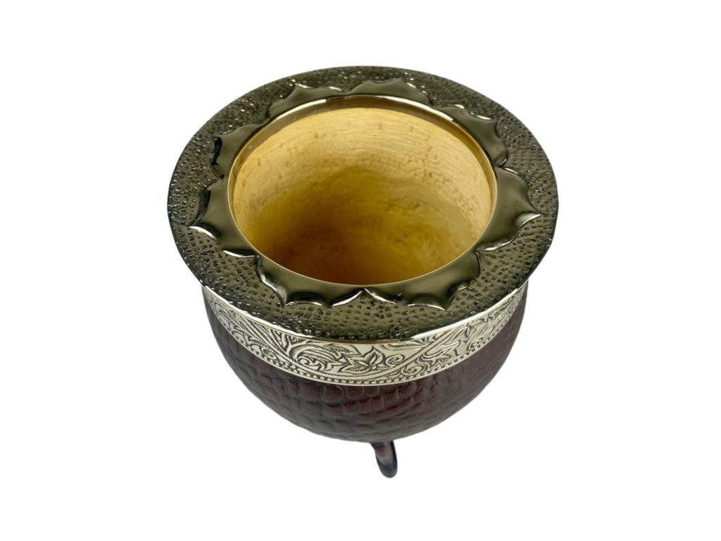 The Martin Fierro Imperial Cincelada gourd in brown is a masterful piece that blends traditional craftsmanship with striking decorative style. Made from natural gourd, finished with a metal rim and hand-carved detailing (“cincelada”), it offers a comfortable grip, stability, and a unique visual experience. The warm brown tone adds elegance, making it perfect for yerba lovers who value the fusion of tradition, artistry, and practicality.Additional parameters