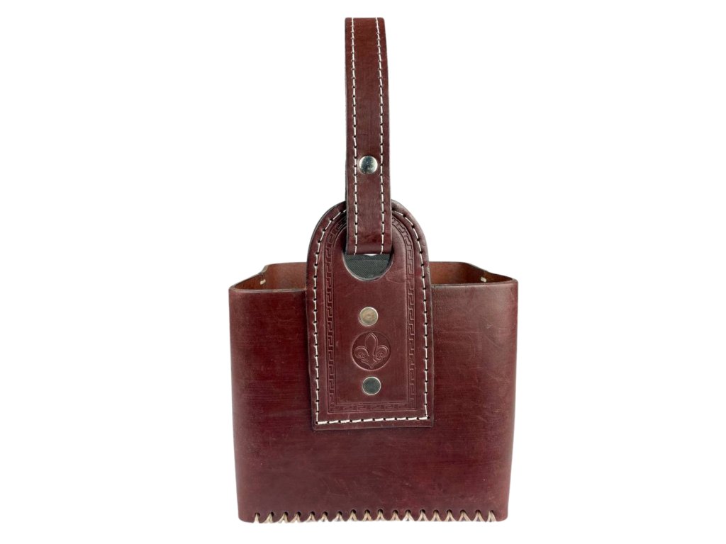Made of cow leather with compartment for gourd, bombilla and thermos. Measures: 20 cm x 20 cm x 17 cm. Color: Brown, BlackAdditional parameters