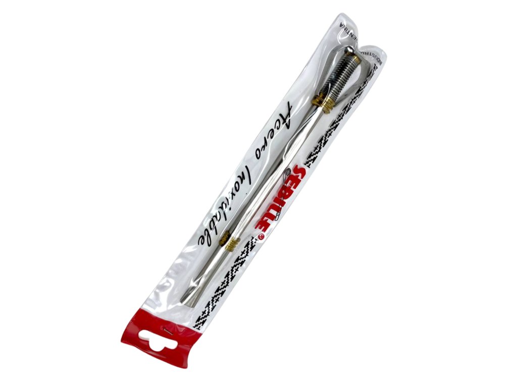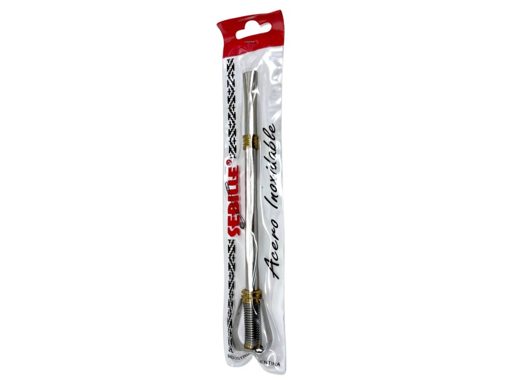The Bombilla Estribo Long Straight 17 cm is a practical and stylish bombilla with a straight design that makes drinking yerba mate comfortable. With a length of 17 cm, it suits most gourds and mate vessels. Made from high-quality material, it ensures durability and easy maintenance. The fine filter at the end effectively traps leaves, keeping your drink clean and free from unwanted particles.