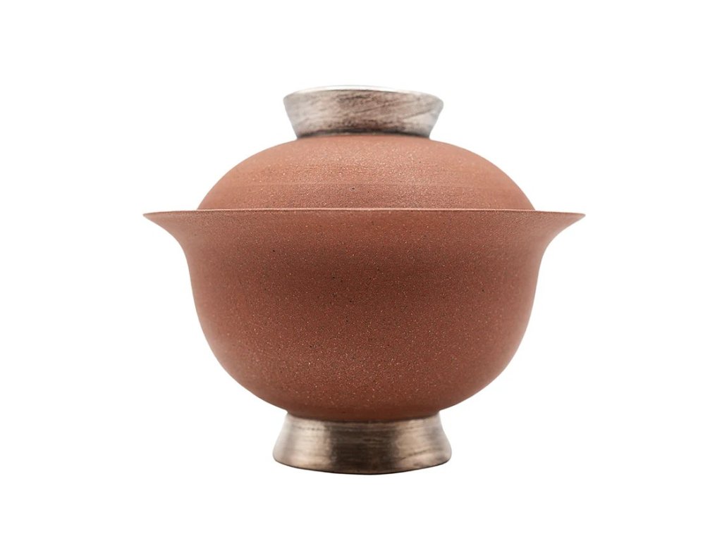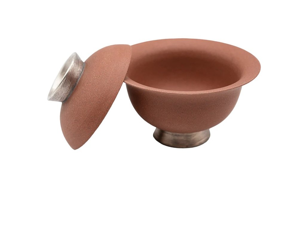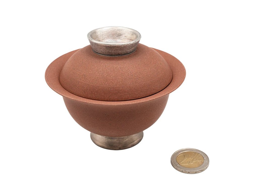 Red Gaiwan with Silver Coloured Tall Foot # 94427, 110 ml