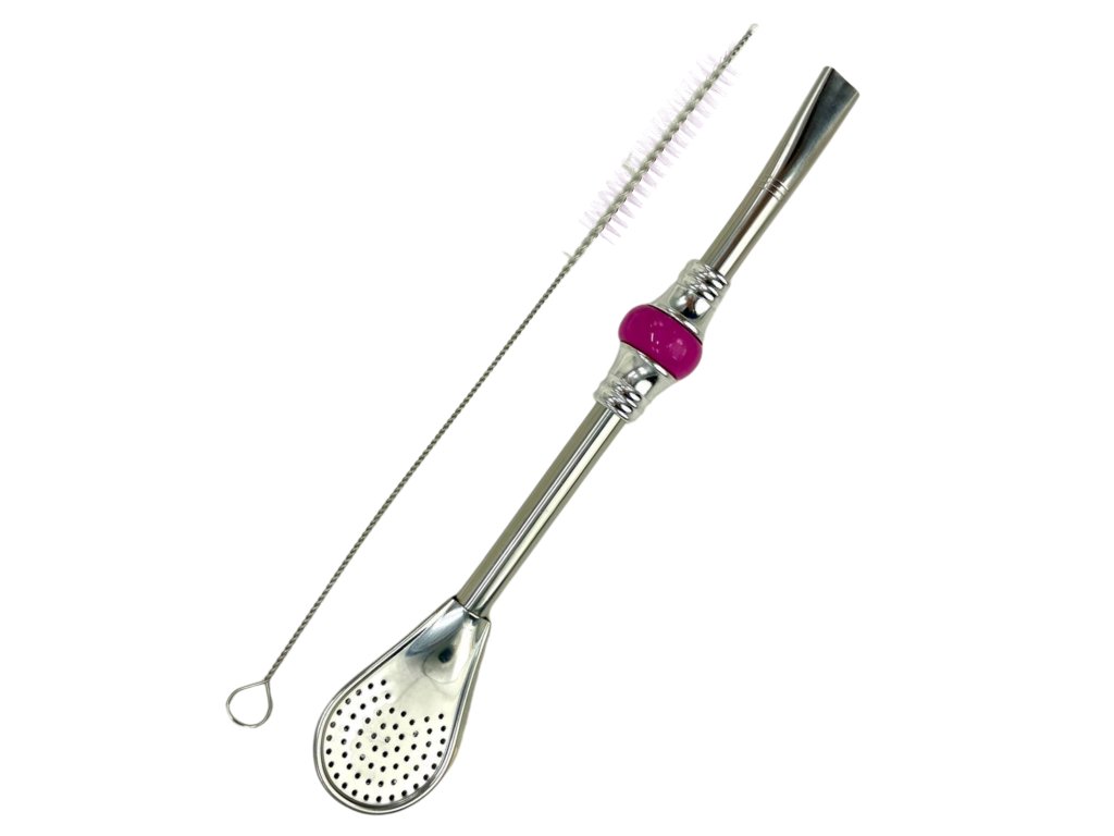 Set Bombilla Cuchara 19cm, with cleaning brush in gift carton box, DARK PINK