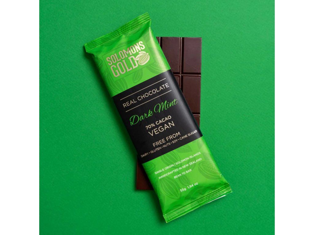 Solomons Gold Smooth Dark Mint 70% is a premium bean-to-bar chocolate crafted from single-origin cacao grown in the Solomon Islands. This bar combines the richness of 70% dark chocolate with a refreshing natural mint aroma, creating a clean, cooling finish without overpowering sweetness. Sweetened only with organic coconut sugar and free from common allergens, it offers a pure and balanced flavour experience.Additional parameters