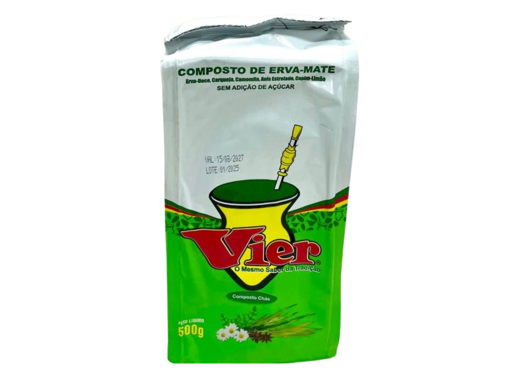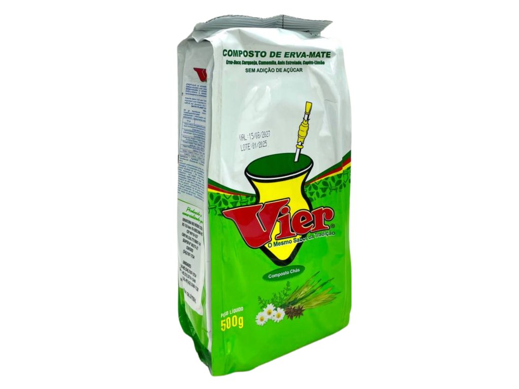 Vier Blend of Teas & Herbs 500 g is a flavored yerba mate blend with herbs and teas, designed for preparing cold or hot mate with a mild and harmonious flavor. The 500 g packaging preserves long-lasting freshness and intense aroma, providing a pleasant and refreshing experience with every sip, perfect for daily relaxation.