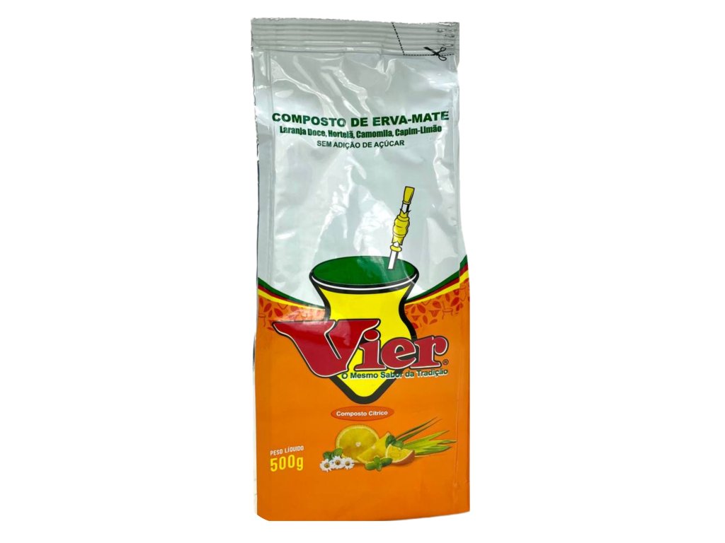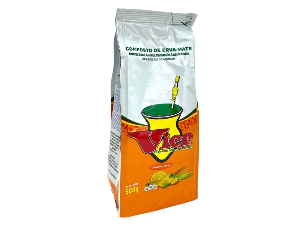 Vier Composto Citric 500 g is a refreshing yerba mate blend designed for preparing cold tereré with a mild and fresh citrus flavor. The 500 g packaging preserves long-lasting freshness and intense leaf aroma, providing a pleasant and refreshing experience with every sip, perfect for hot days and daily refreshment.